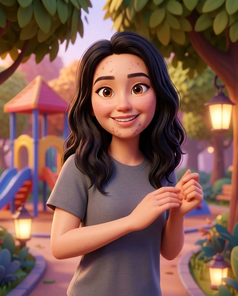 Мультяшный персонаж с большими глазами и доброй улыбкой.