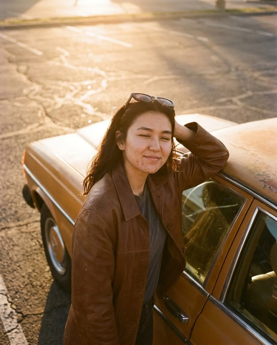 Кожаная куртка, старая машина. Найденное фото из 1976-го.